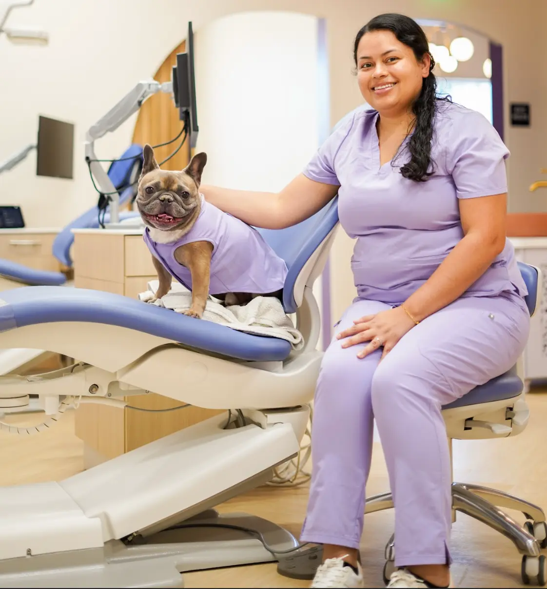 Zeno is Dr. Garcia's lifelong friend and Oui Smiles' trusted therapy dog. He's specially trained to help anxious patients feel safe in the dental chair. When he’s not at the park chasing squirrels, he loves making our patients laugh and feel safe. Get in touch with us if you'd like to have Zeno sit with you during your visit with us!